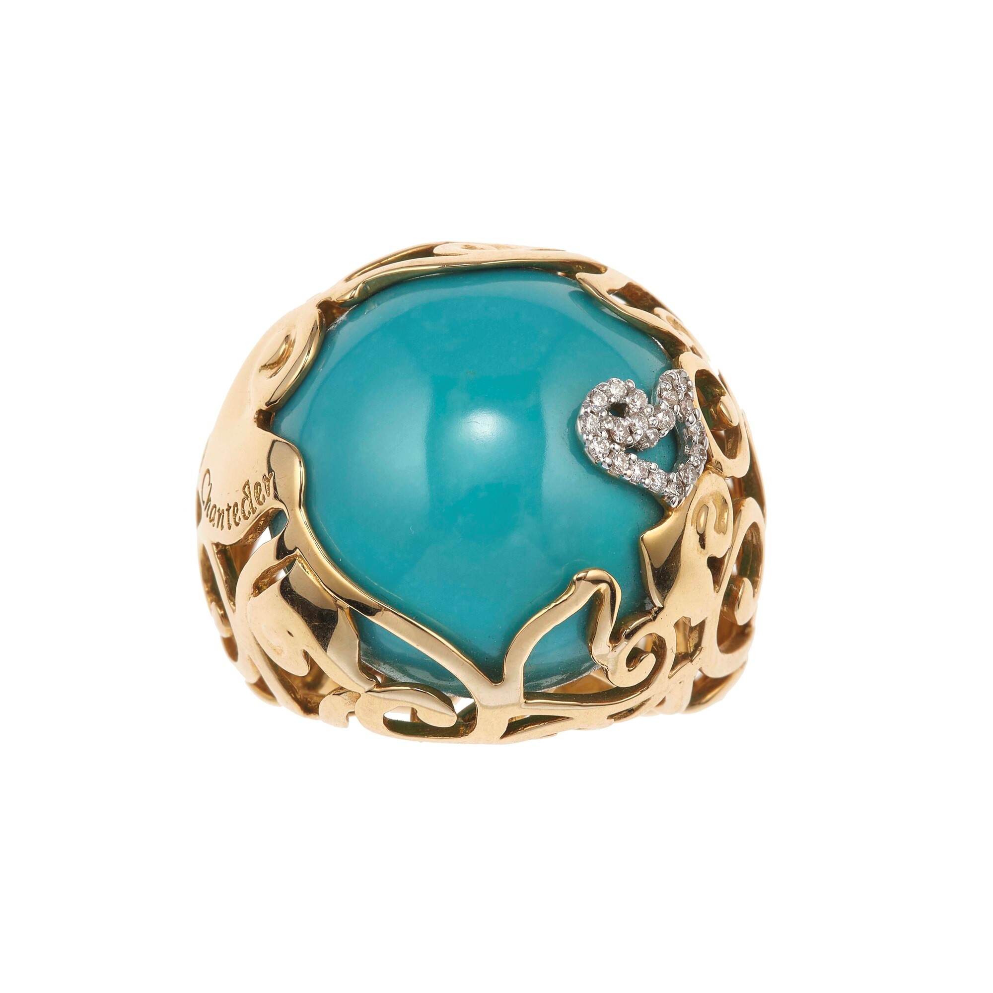 Chantecler. Anello con pasta di turchese e piccoli diamanti montatura in oro...