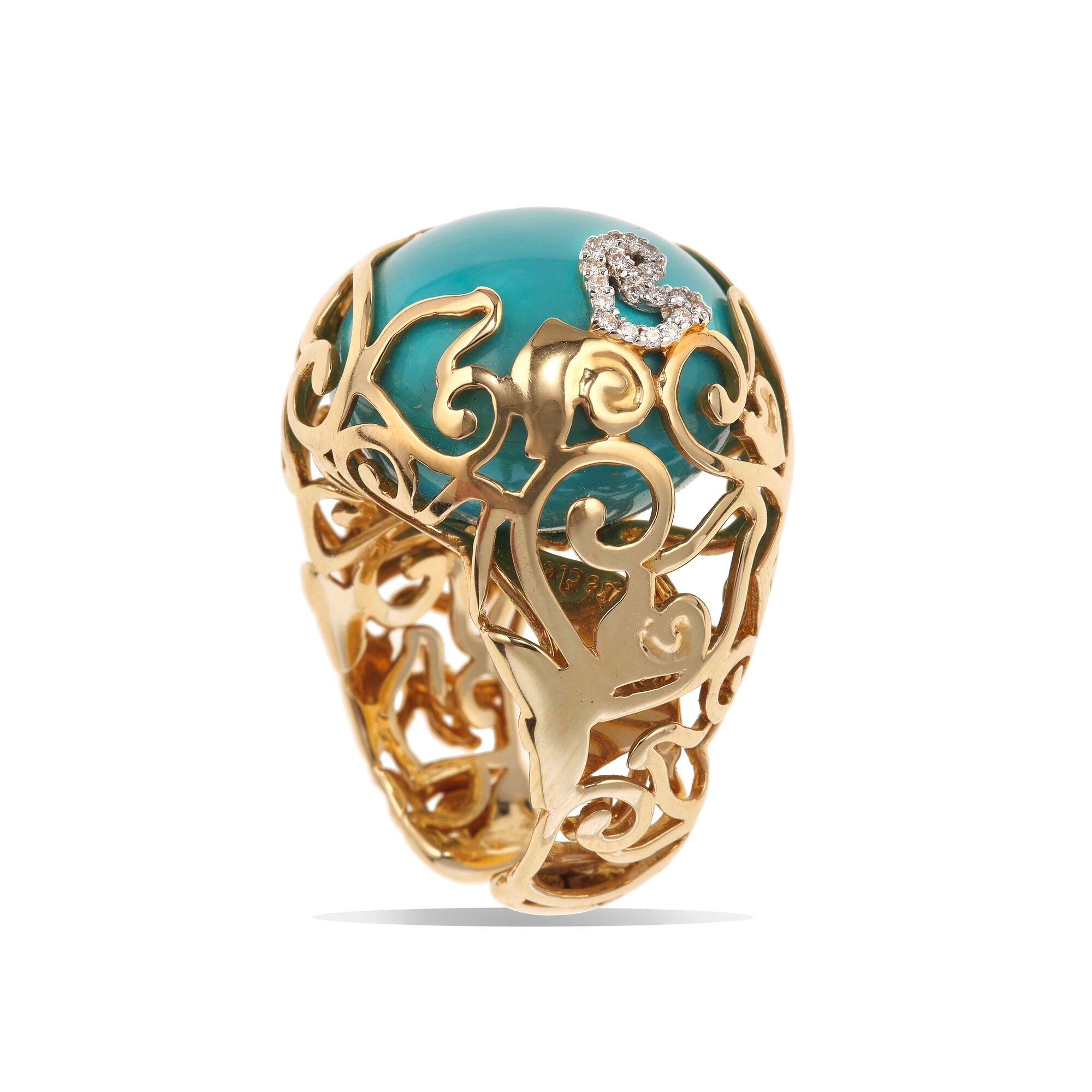 Chantecler. Anello con pasta di turchese e piccoli diamanti
