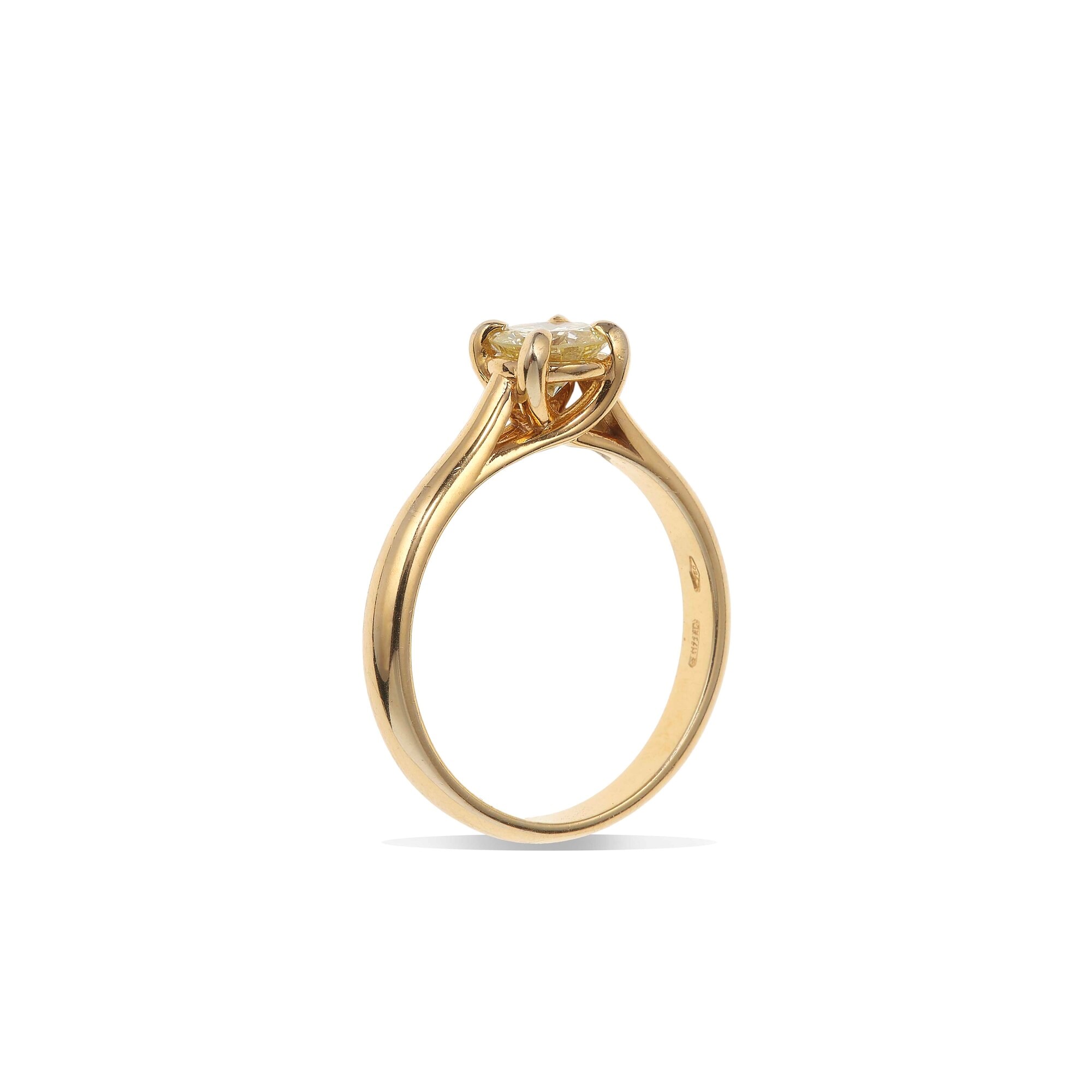 Anello con diamante taglio brillante di ct 0.65 circa montatura in oro giallo...