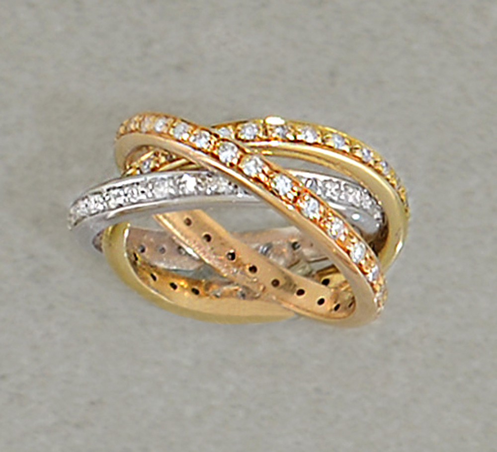 ANELLO ANELLO. In oro giallo rosa e bianco 18 kt realizzato a tre eternel...