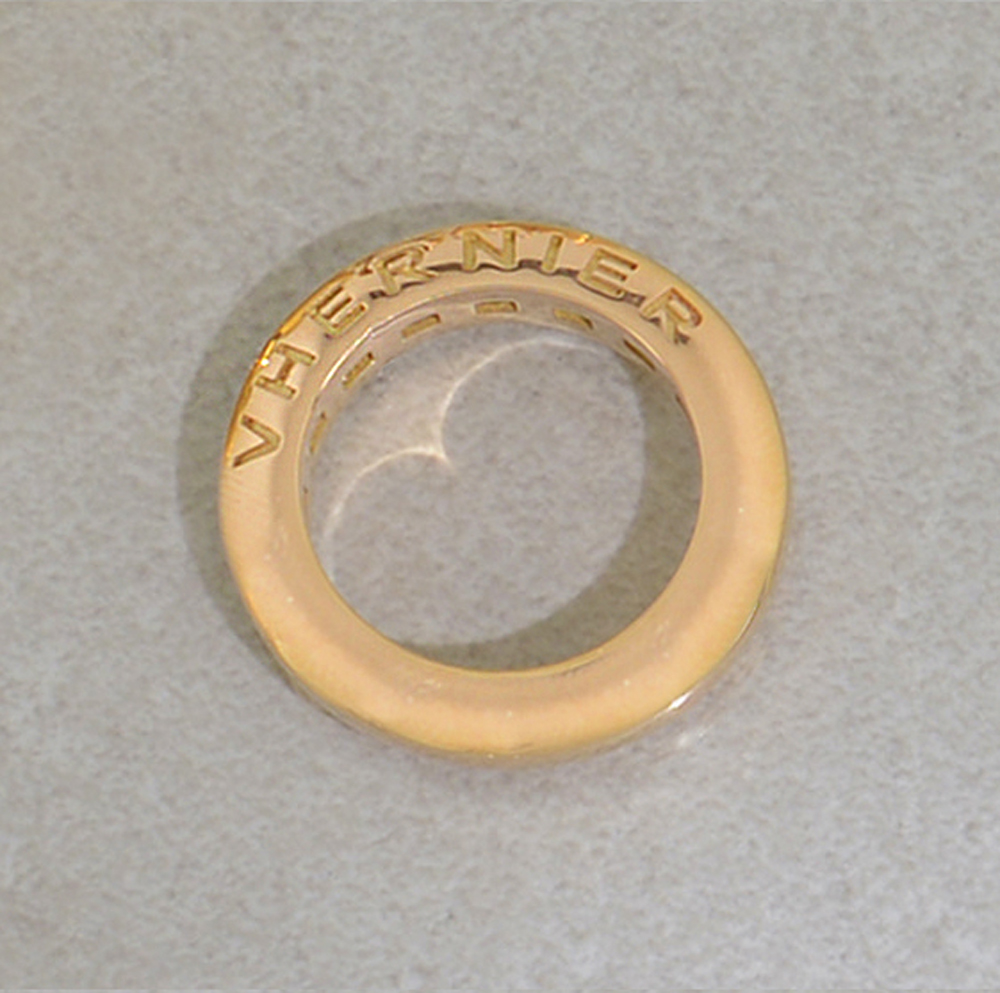 ANELLO DI VHERNIER. In oro rosè 18 kt collezione "REVERSO" realizzato a fascia con logo della maison inciso da ambo i lati.