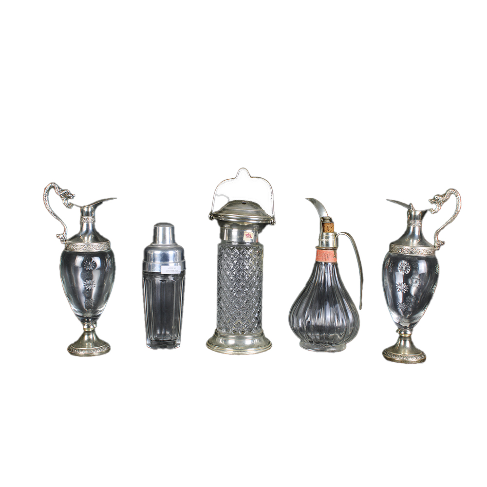 LOTTO DI 5 OGGETTI in vetro e metallo XX secolo misure varie