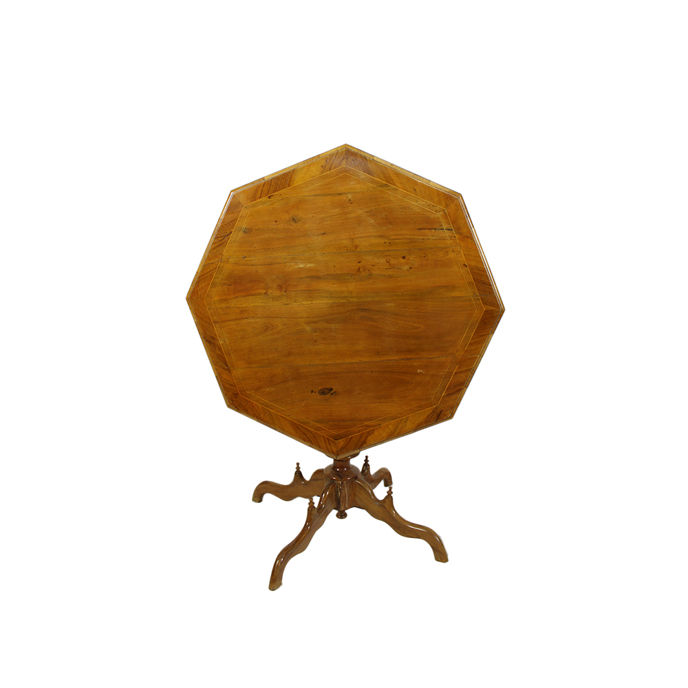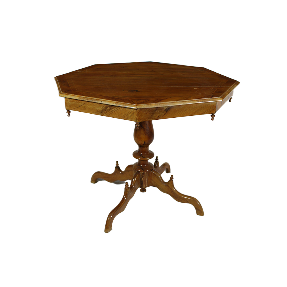 TAVOLO DA CENTRO A VELA in legno di noce con perfilo in bosso maestranze italiane XIX secolo H 80 X 96 X 105 A BANDIERA H 139 X 96