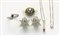 Gr 14,40; diam. orecchini cm 2; lungh. catenine cm 40 - 43; dim. fermezza cm 2,41,3; misura 13.