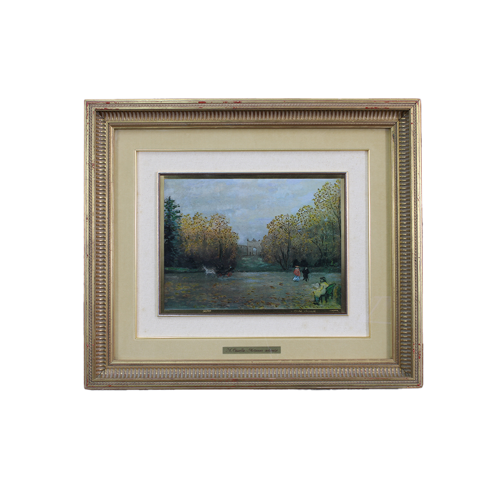 M-CASCELLA LITOGRAFIA SU LASTRA ORO 750 tecnica mista con colori a smalto e polveri di metalli preziosi , cotti a 120/150 gradi . Edizioni La torre . Settembre 1960. Multiplo 56/99 firma in basso a dx . Opera fornita di certificato di autenticità h cm 30 x 40 - cornice h cm 62 x 72