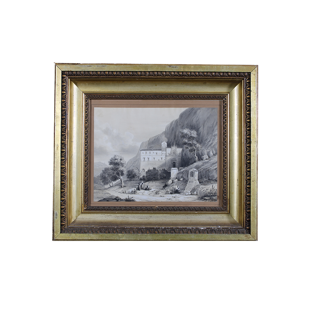 CARL HACKERT (1740-1796) tecnica mista (matita penna acquerello gouache) veduta del santuario di S. Rosalia sul Monte Pellegrino XVIII secolo h cm 36 x 24 - cornice h cm 54 x 59