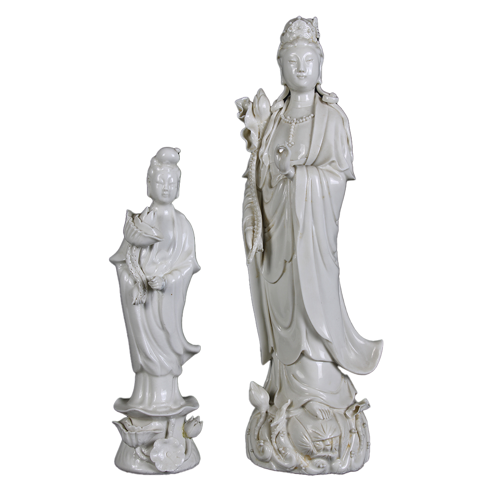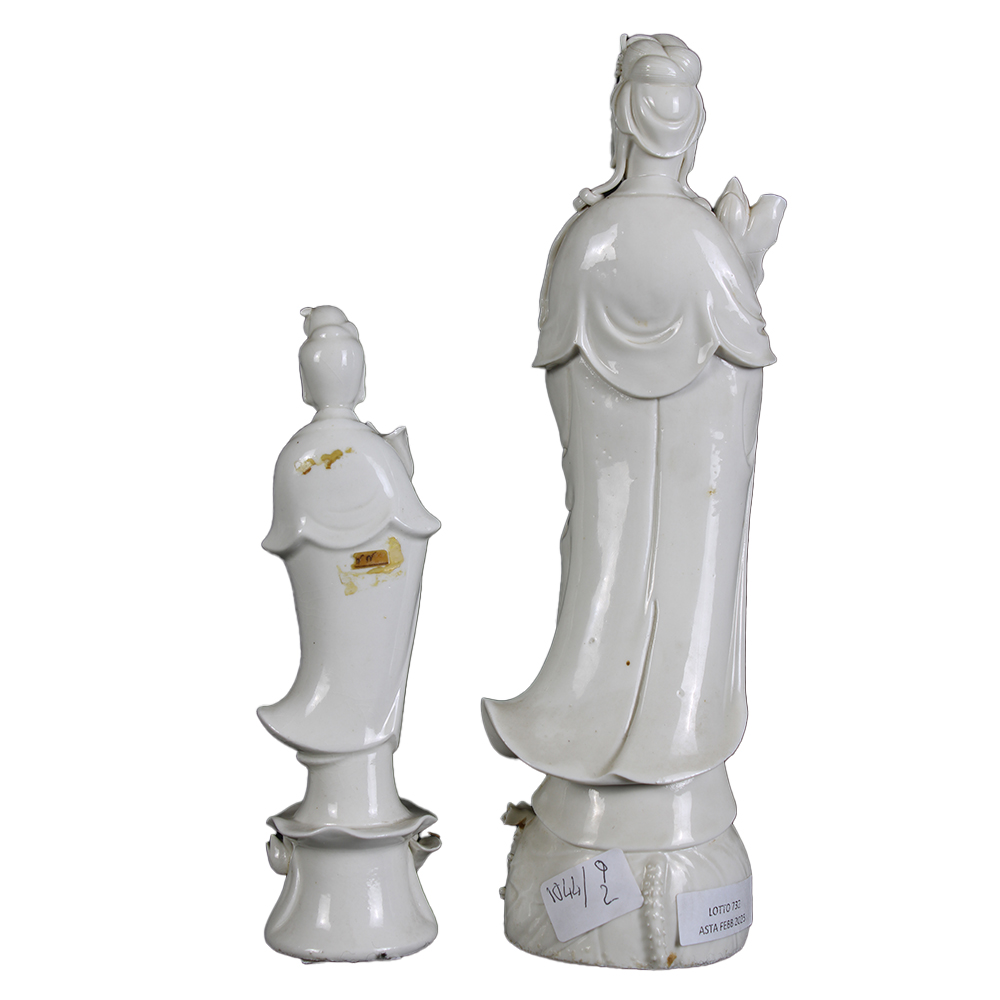 2 SCULTURE in porcellana bianca raffigurante geishe maestranze orientali XX secolo h cm 26 x 8 - h cm 18 x 5