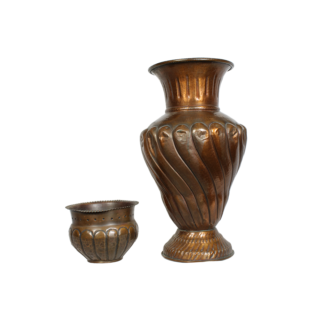 LOTTO COMPOSTO DA 1 grande vaso in rame sbalzato e 1 potiche in rame sbalzata primi 900 h cm 61 x Ø 35 - h cm 18 x Ø 24,5