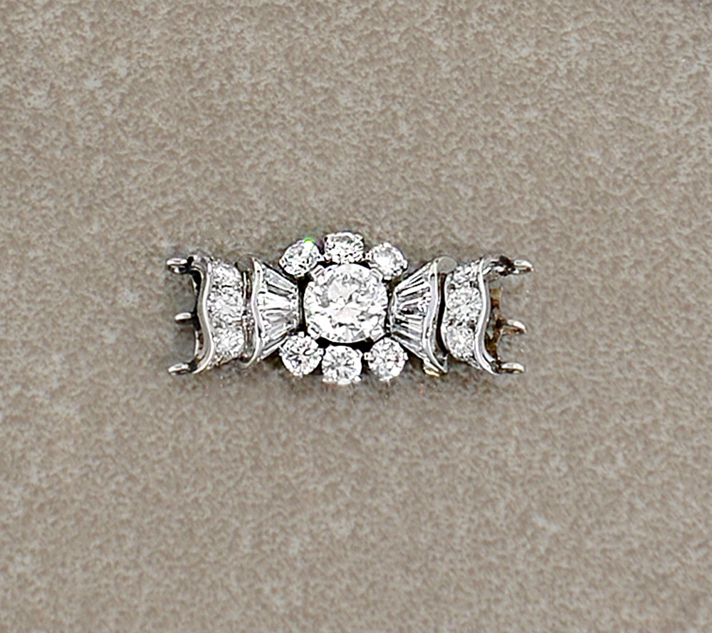 FERMEZZA. In platino con al centro diamante taglio brillante di cts. 1,20 ca. (prob colore G purezza VVS) entro contorno in diamanti taglio brillante per tot. cts. 1,50 ca. reca firma Bulgari.
