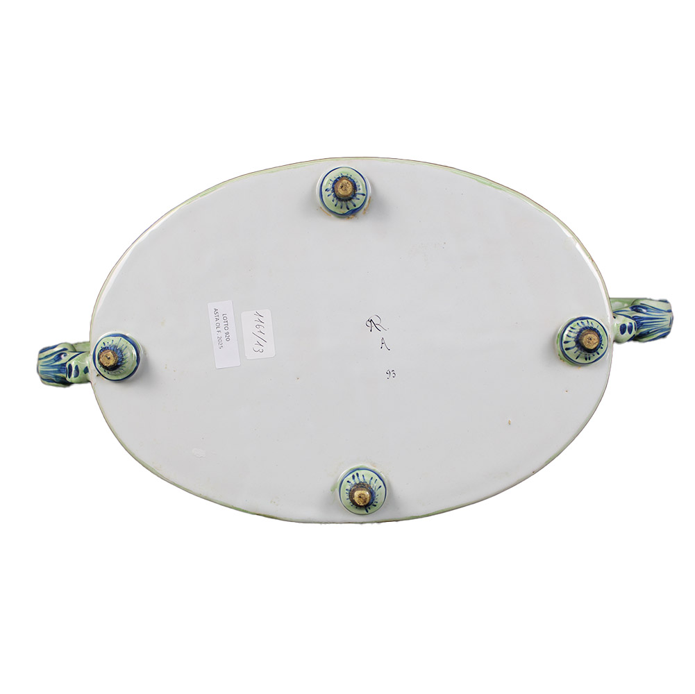 CENTROTAVOLA in ceramica policroma reca marchio AR A 93 Italia primi 900 h cm 13 x 43 x 21
