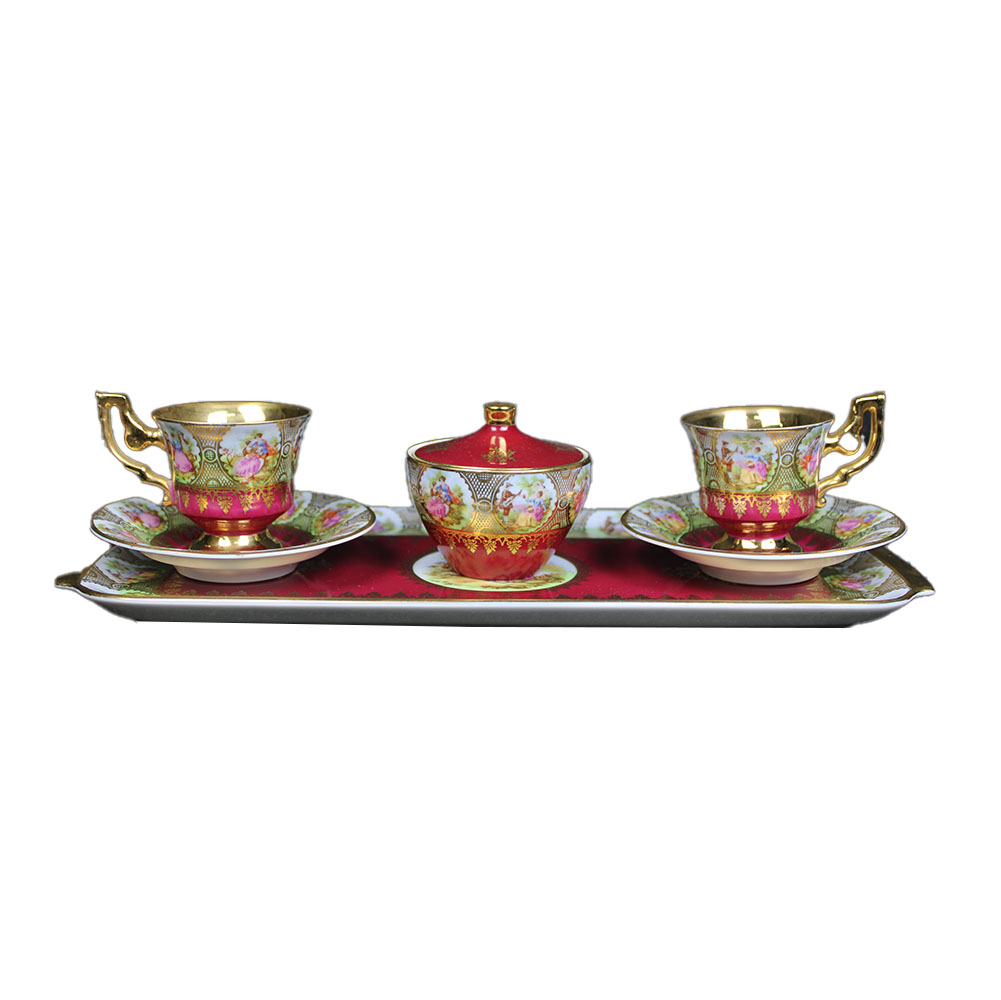 SERVIZIO TETE A TETE composto da vassoio e due tazzine ed una zuccheriera manifattura tedesca XX secolo misure varie