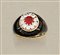 ANELLO. In oro giallo e bianco 18 kt con rubino taglio rotondo di cts. 0,50 ca. entro cornice in diamanti taglio brillante per tot. cts. 0,50 ca. su motivo in smalto nero.