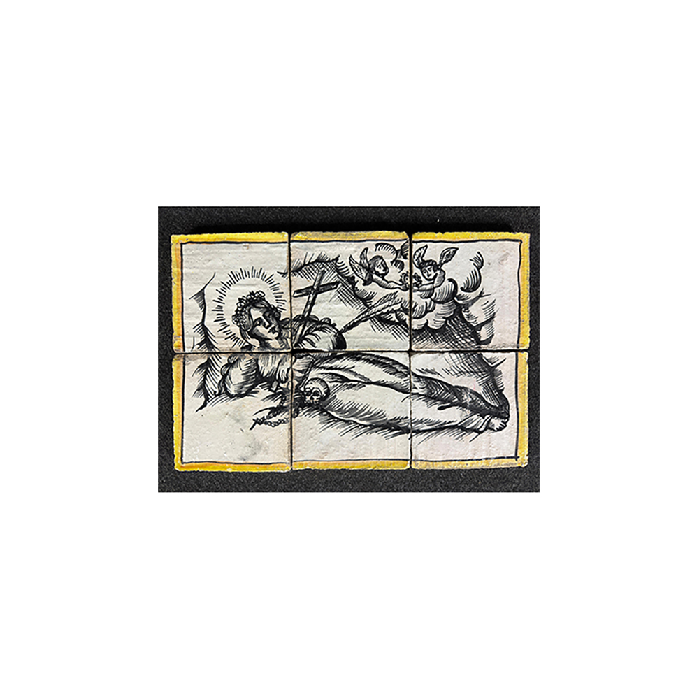 PLACCA in maiolica dipinta composto da 6 mattonelle raffigurante Santa Rosalia maestranze siciliane XX secolo h cm 30 x 45,5