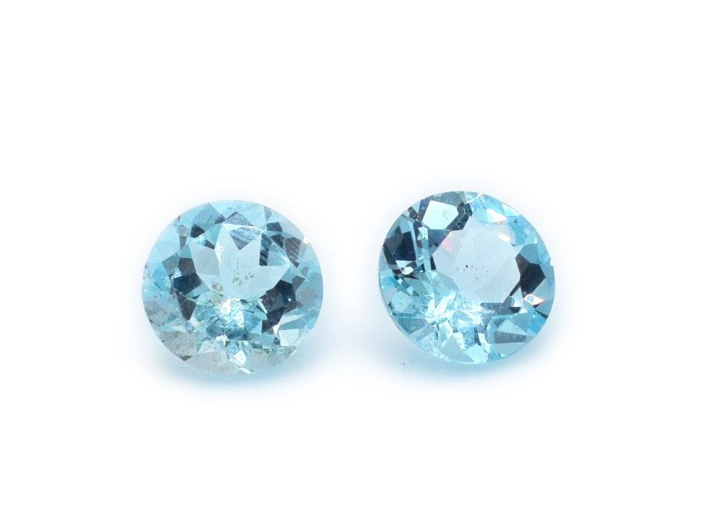 Coppia di topazi blu, taglio brillante diametro 12 mm