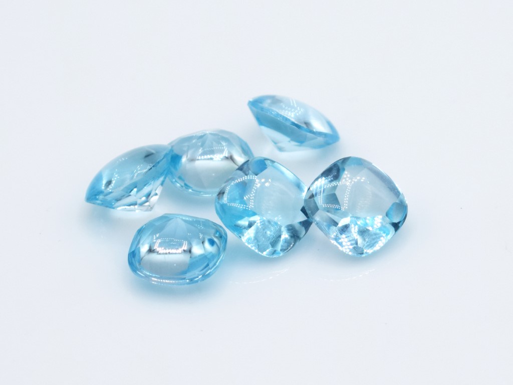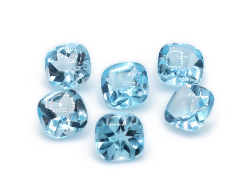 Lotto di topazi blu, forma quadrata, taglio buff top, misure 12x12