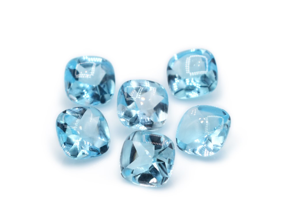 Lotto di topazi blu, forma quadrata, taglio buff top, misure 12x12