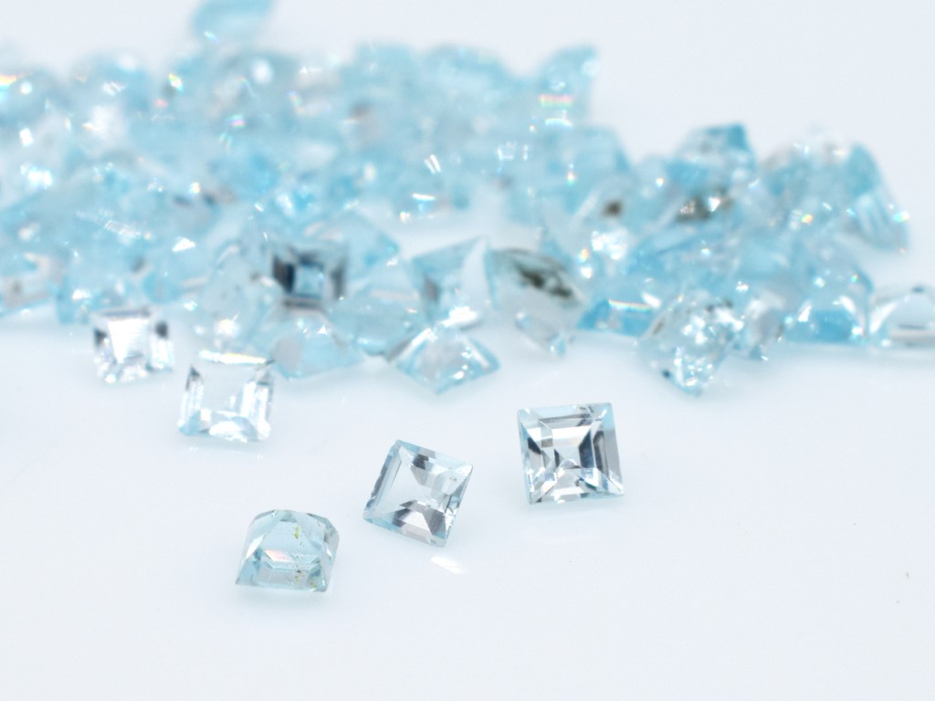Lotto topazi blu, taglio princess, misure 4x4 mm