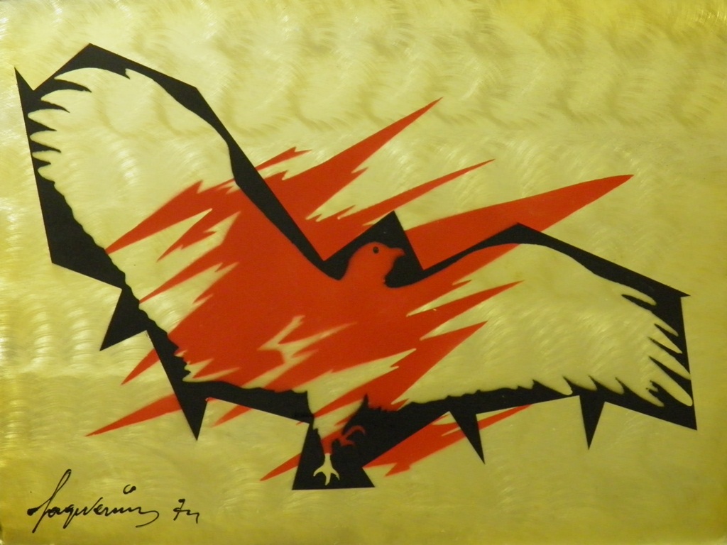 VERNIS SAGE BENGASI 1916 SENZA TITOLO, 1974 SMALTO SU LAMIERA cm 60 x 80 Firma e anno in basso a destra Certificato di autenticità del Maestro al retro dell' Opera