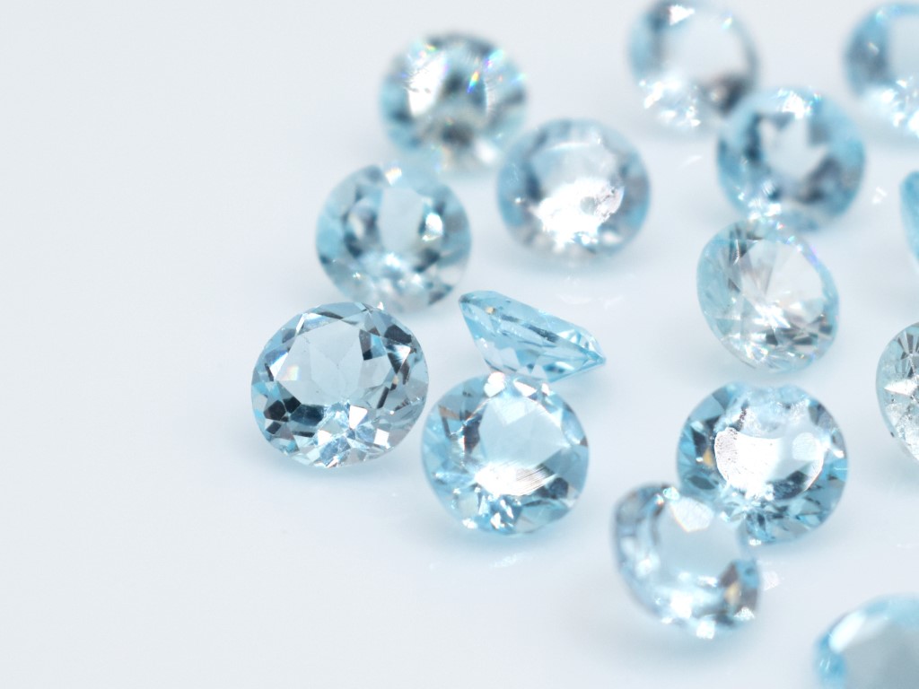 Lotto di topazi blu, taglio brillante, misura diametro 7 mm
