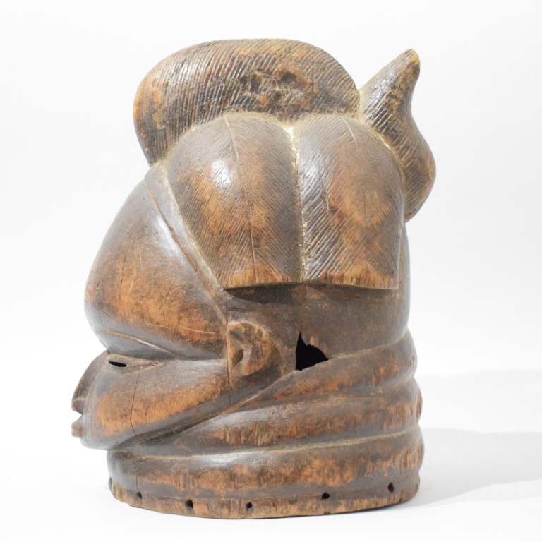 A large African Sowei helmet mask