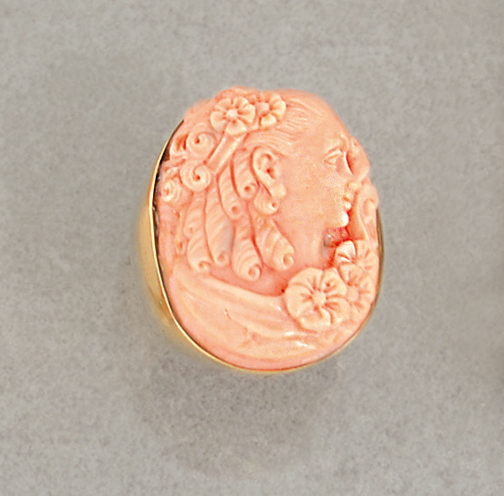 Lot 410 | ANELLO ANELLO. In oro giallo 9 kt con al centro grande inserto in corallo...