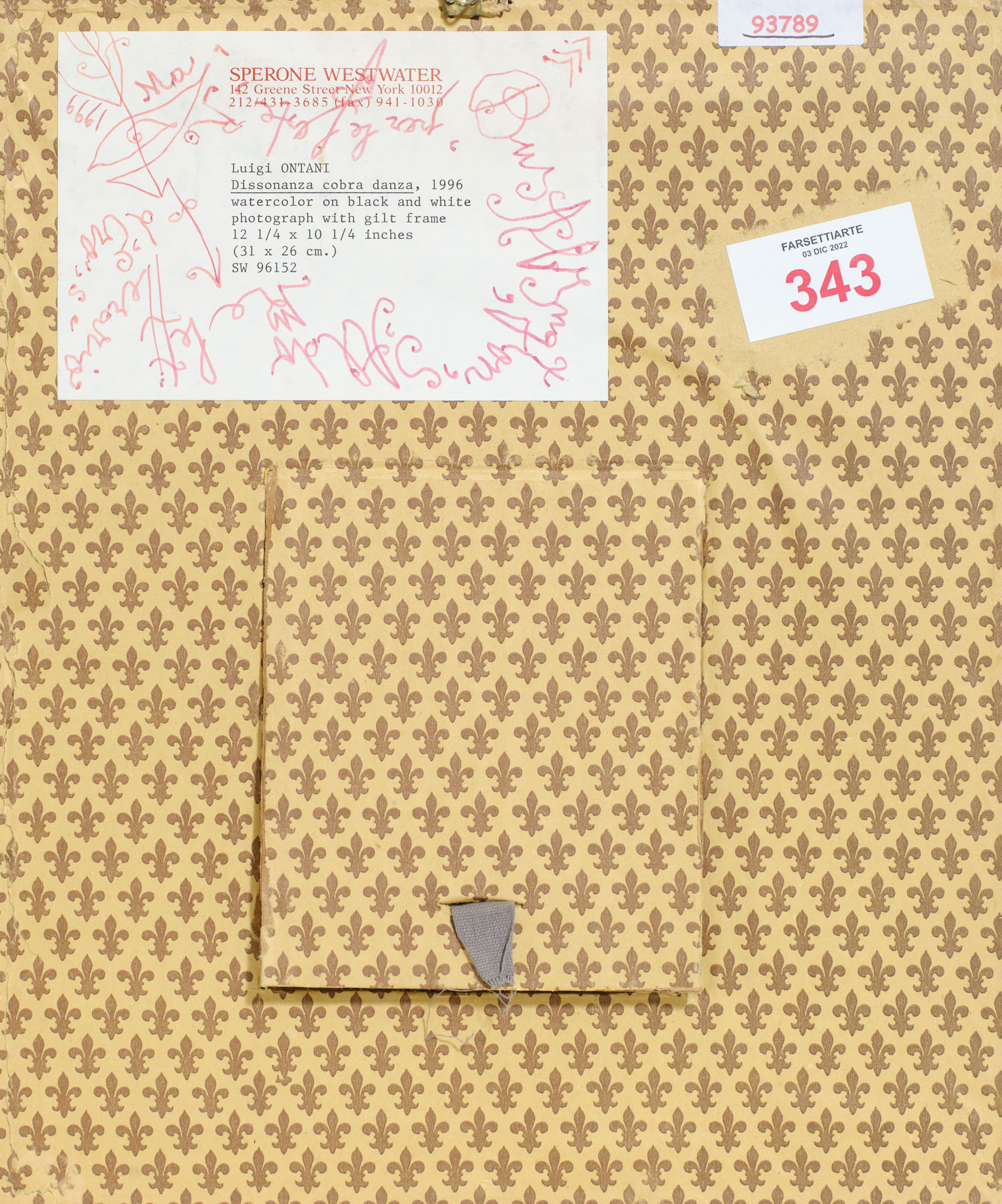 Etichetta Sperone Westwater Gallery, New York sul retro