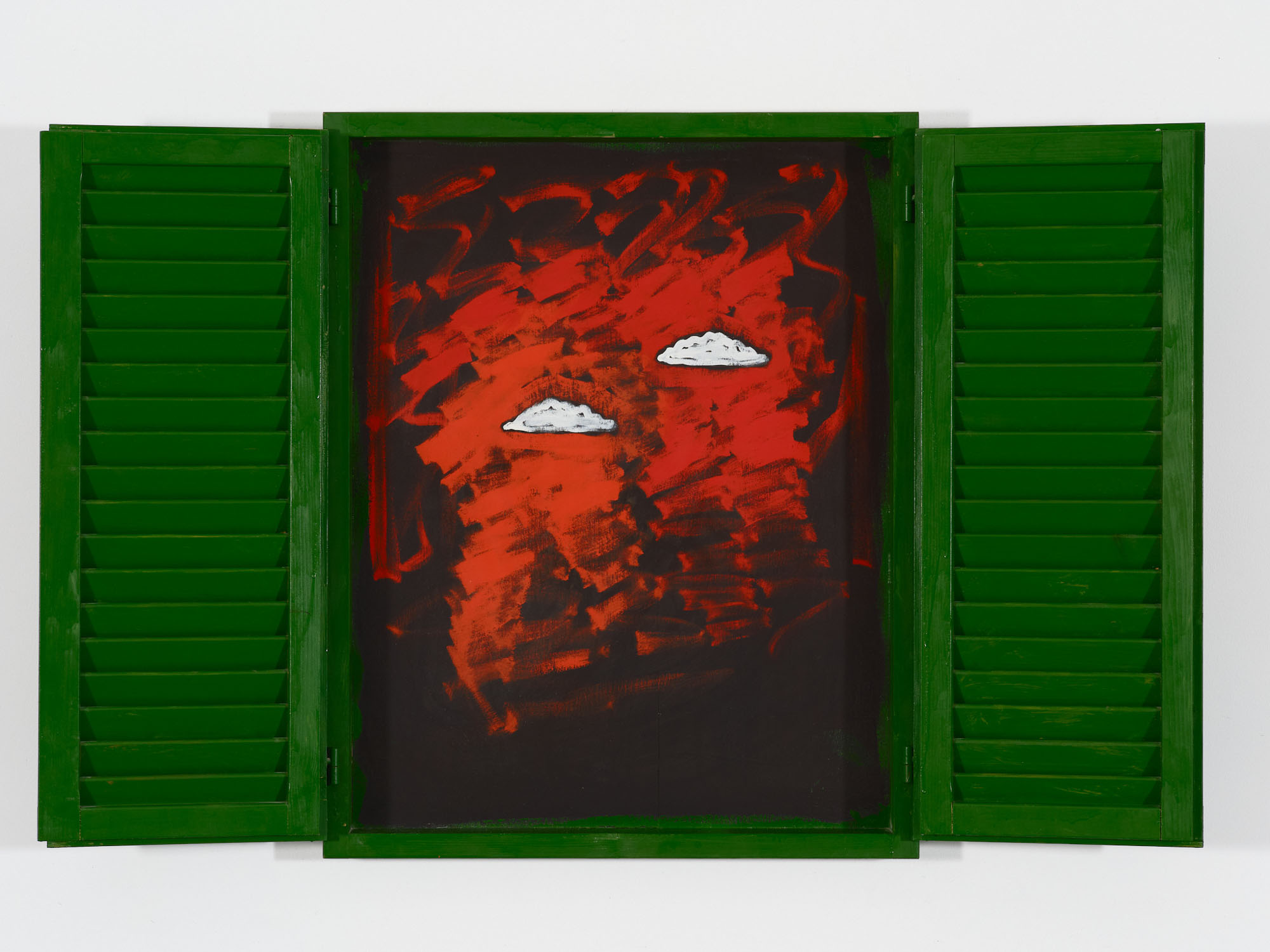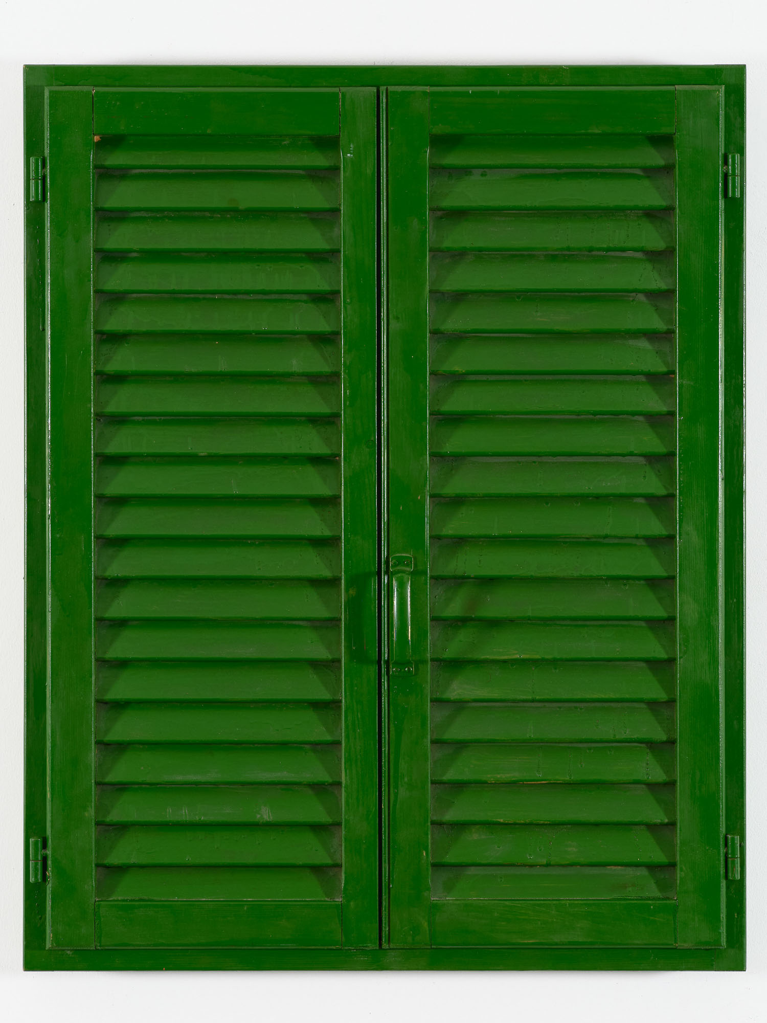 Smalto industriale, tempera, persiana, cardini, telaio in legno, cm 100 x 80 x 9