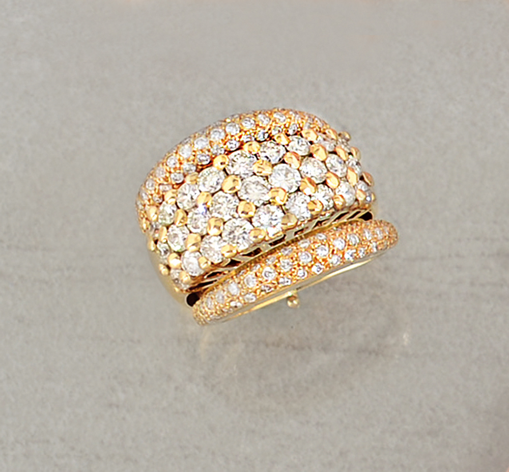 ANELLO. In oro giallo 18 kt a fascia in diamanti taglio brillante per tot. cts. 3,00 ca.