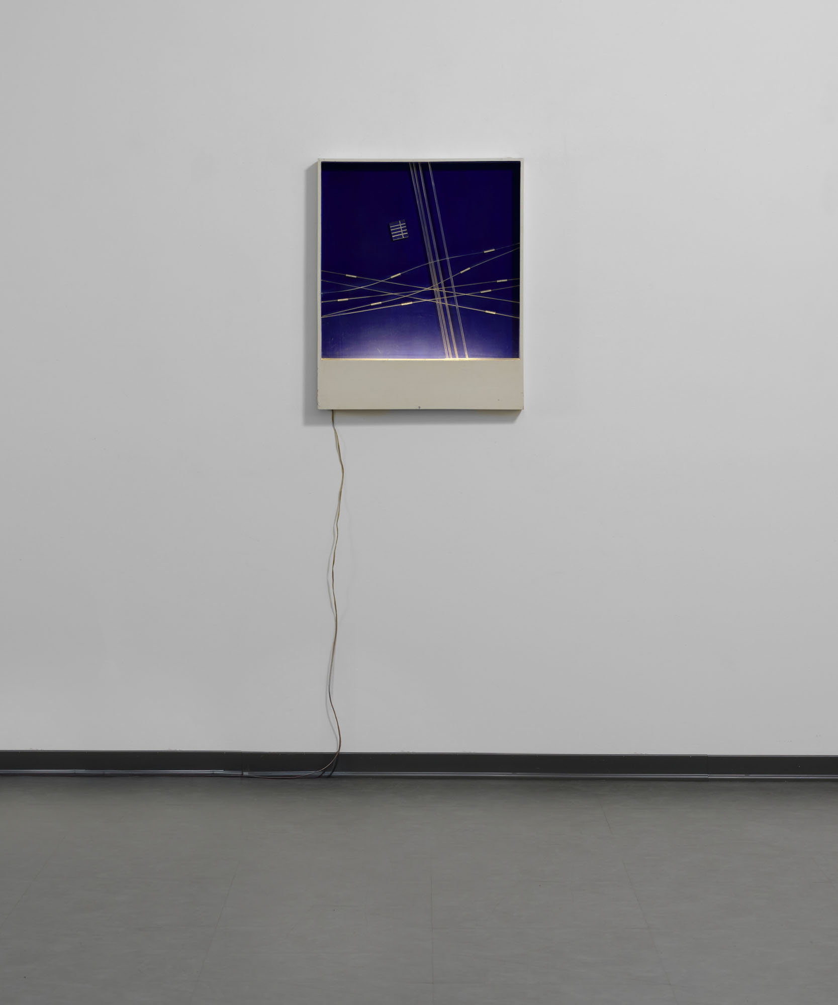 Box, plastica, legno, neon, sistema elettrico, cm 77 x 63 x 7