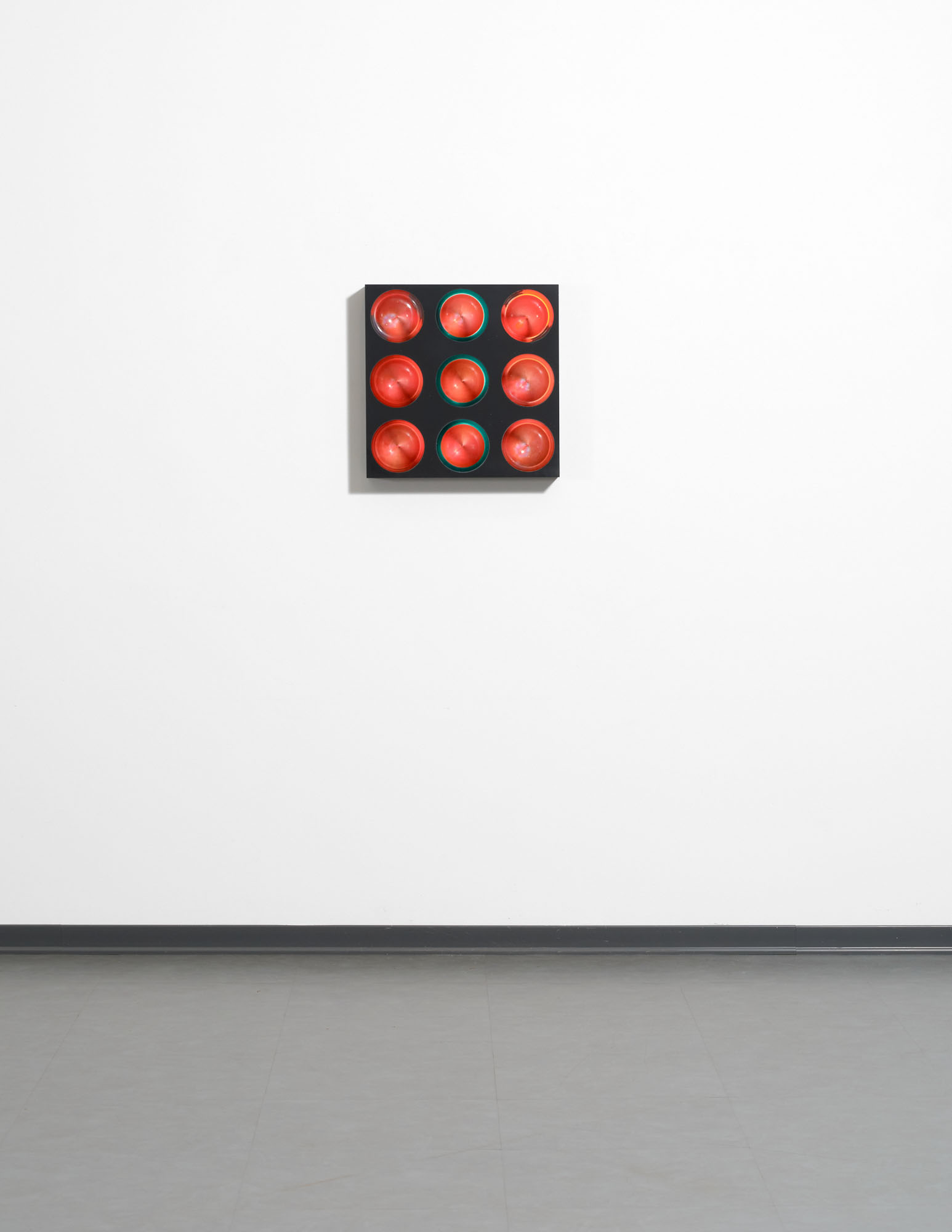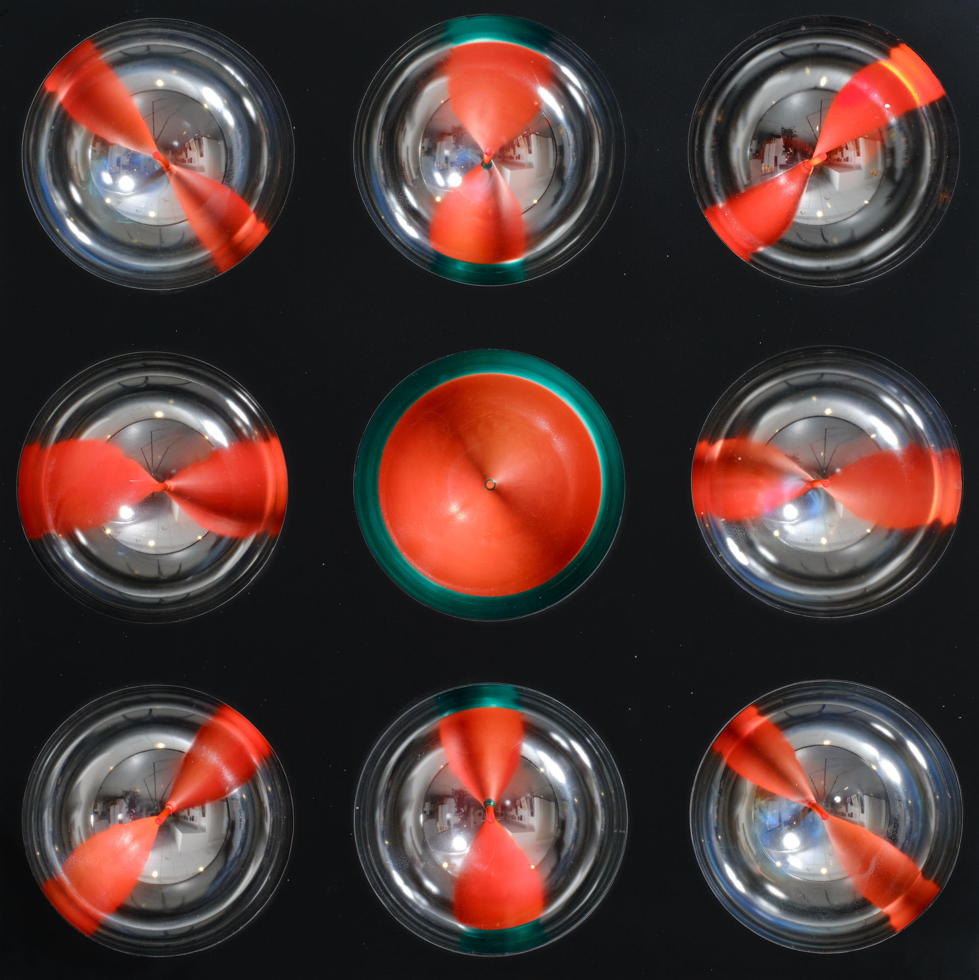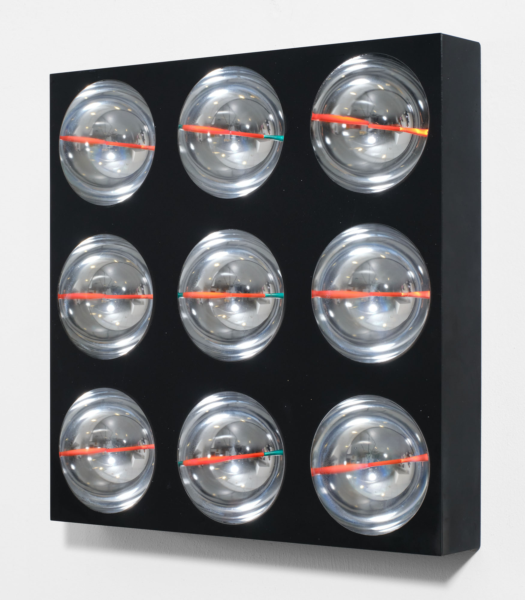 Sfere in metacrilato metallizzato e plexiglas, cm 52 x 52 x 8,5