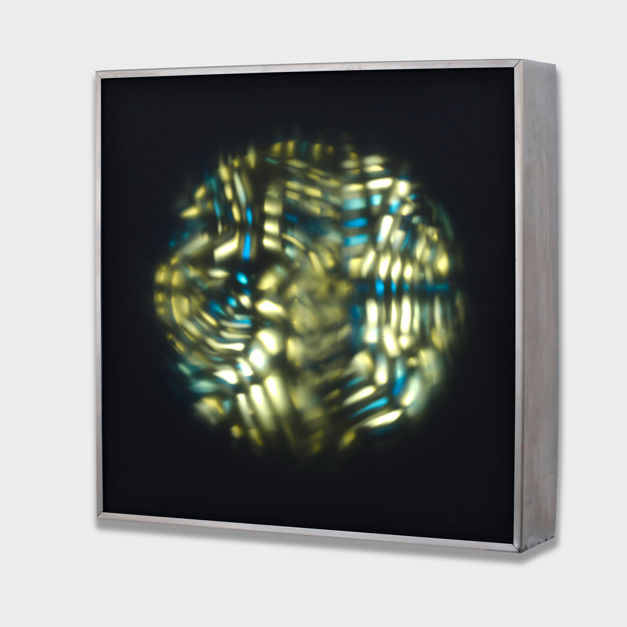 Box, legno, plexiglass, acciaio e sistema elettrico luminoso, cm 60,5 x 60,5 x 13