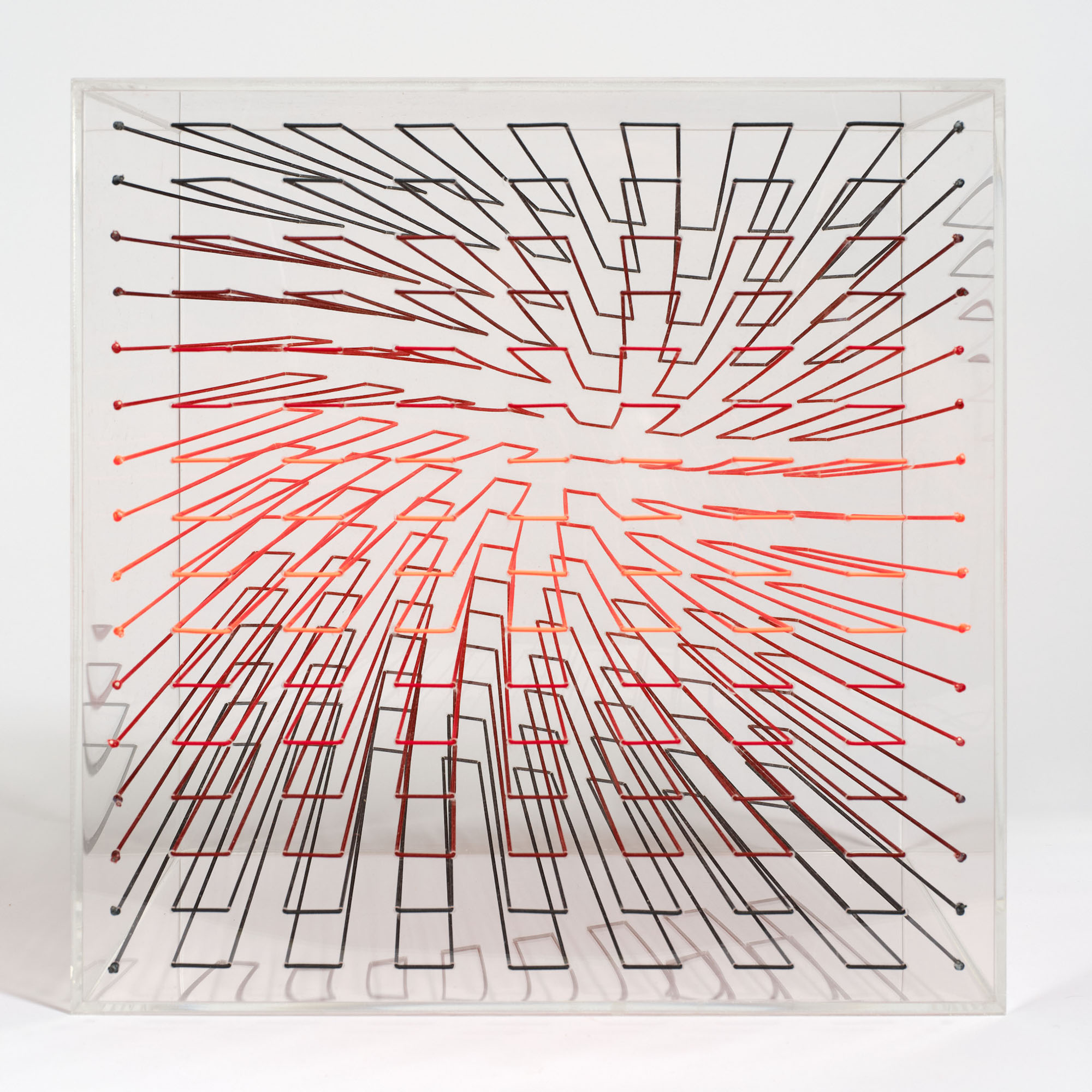 Scultura in plexiglas e corda elastica in 3 colori, cm 50 x 50 x 50
