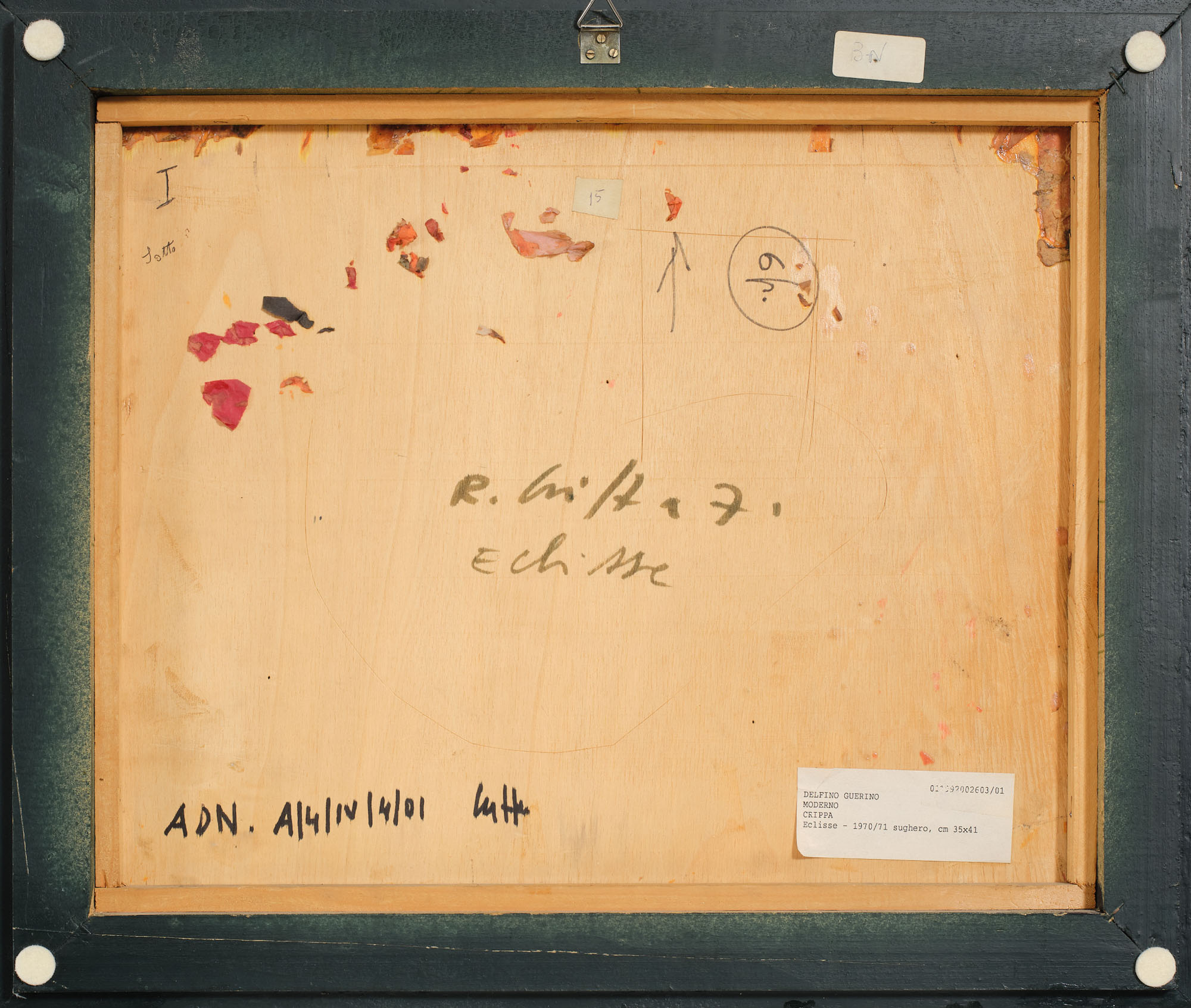Tecnica mista, collage e sughero su tavola, cm 34 x 41,5