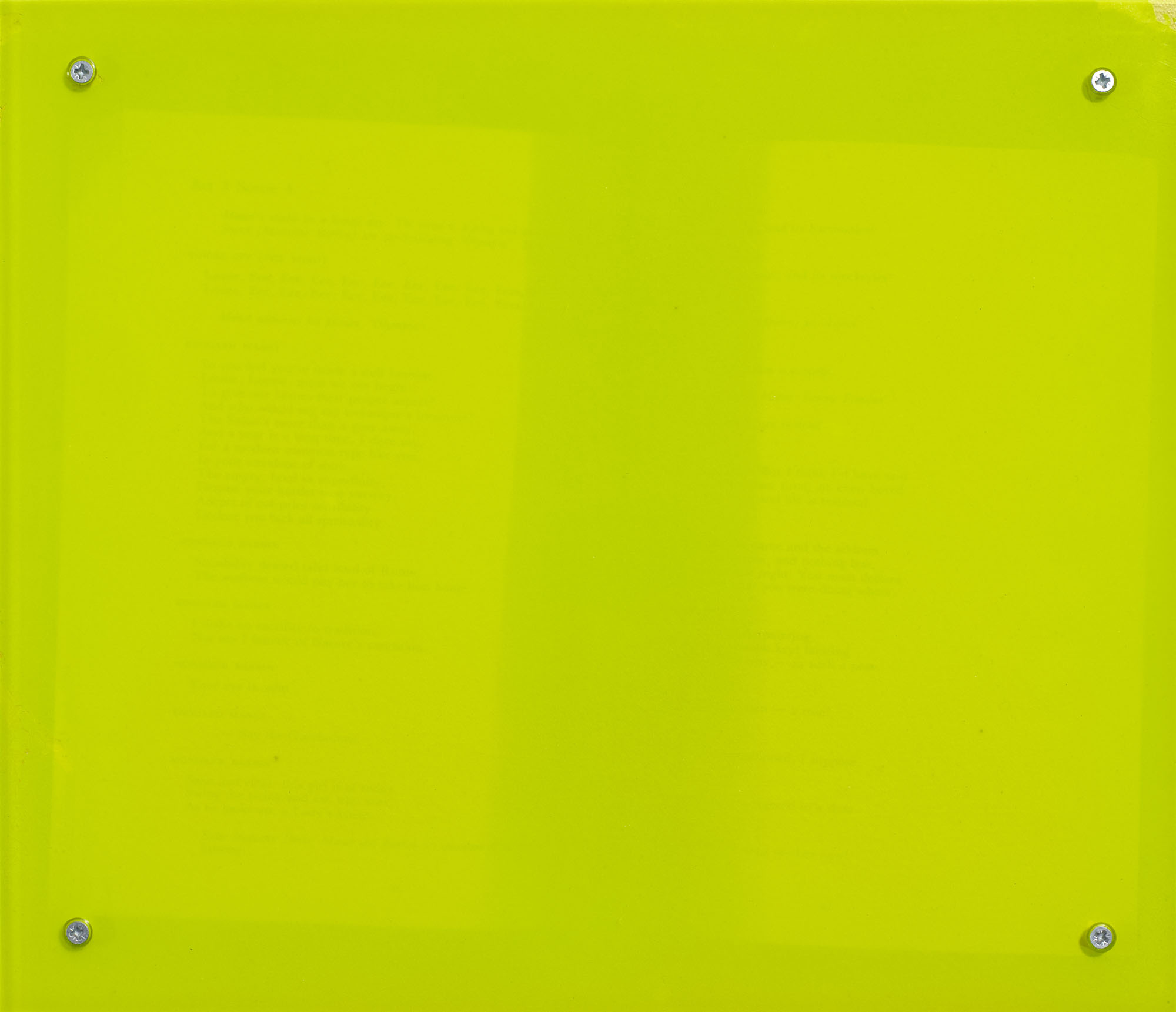 Olio, collage e plexiglas su tela applicata su tavola, cm 29,5 x 34