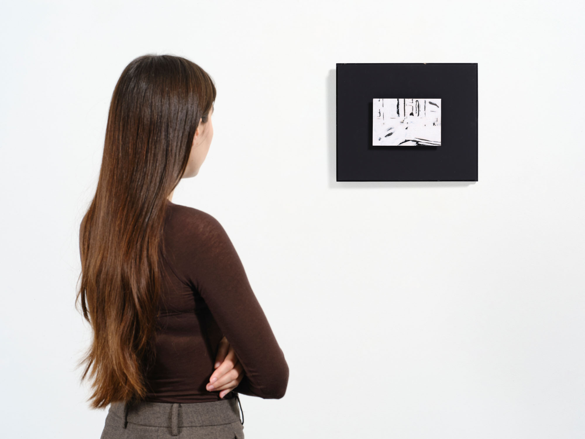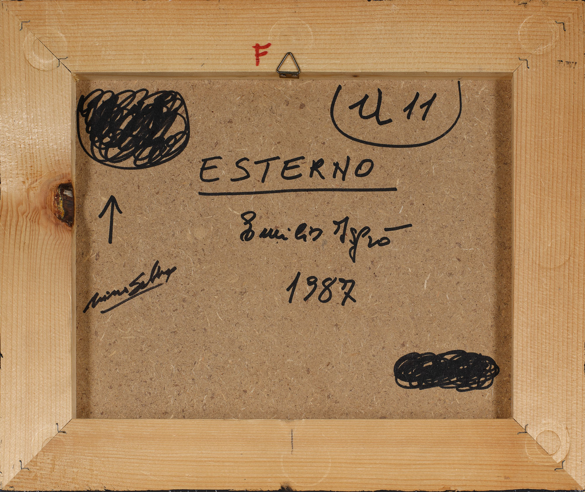 Tecnica mista su cartoncino applicato su tavola, cm 30 x 36 (interno cm 12 x 17)