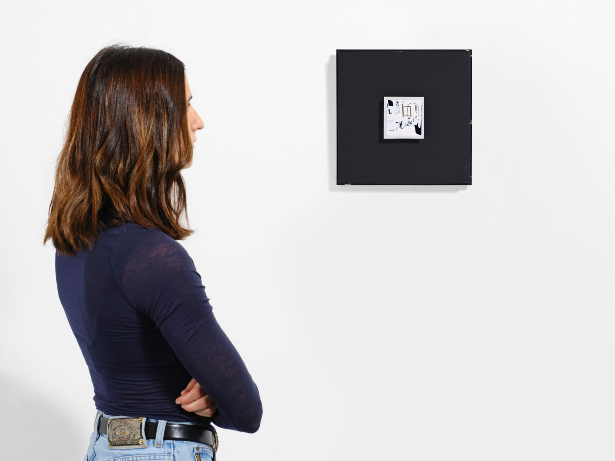 Tecnica mista su cartoncino applicato su tavola, cm 30 x 30 (interno cm 9,2 x 9)