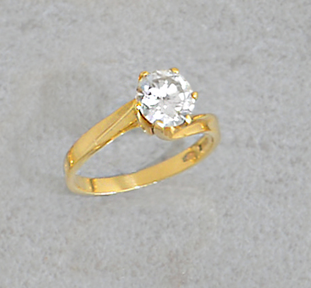 ANELLO. In oro giallo 18 kt con diamante taglio brillante disposto a solitario per tot. cts. 1,20 ca. (prob colore K purezza SI), entro castone a sei griffes.