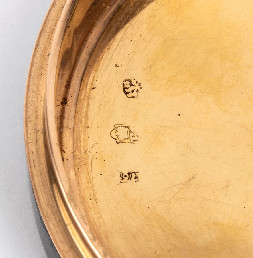 Punzonata con marchi non perfettamente decifrabili che sembrerebbero essere quelli in uso in Russia, San Pietroburgo, dal 1776 al 1825.