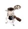 Altezza x larghezza x profondità: 21 x 22 x 11 cm. Peso: 779 gr. corpo piriforme liscio poggiante su tre piedini stilizzati, coperchio incernierato con presa a trottola. Manico radiale in legno tornito.