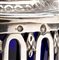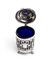 Altezza x larghezza x profondità: 10,5 x 9,7 x 6 cm. Peso totale: 264,6 gr. Peso netto argento: 170,3 gr. di forma cilindrica poggiante su tre piedini ad artiglio, corpo traforato a motivi geometrici impreziosito da elementi floreali, coperchio incernierato con presa a forma di ghianda. Contenitore in vetro blu.