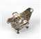 Altezza x larghezza x profondità: 12 x 21,5 x 14,5 cm. Peso: 570 gr. a navicella, poggiante su quattro piedini fogliati, interamente sbalzata e cesellata sul corpo; manici laterali a foggia di canne di bambù, doppio beccuccio.