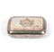 Altezza x larghezza x profondità: 2 x 10,5 x 6,3 cm. Peso: 149 gr. di forma rettangolare ad angoli stondati riccamente inciso con motivi stilizzati, coperchio incernierato.