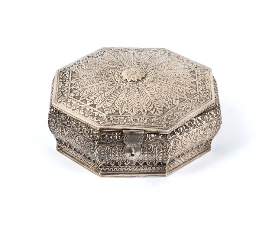 Scatola indiana in argento fine XIX secolo. Altezza x larghezza x profondità:...