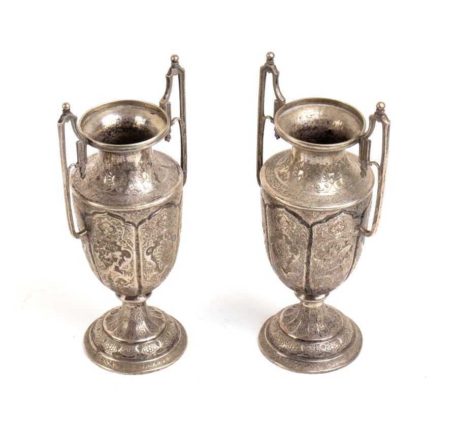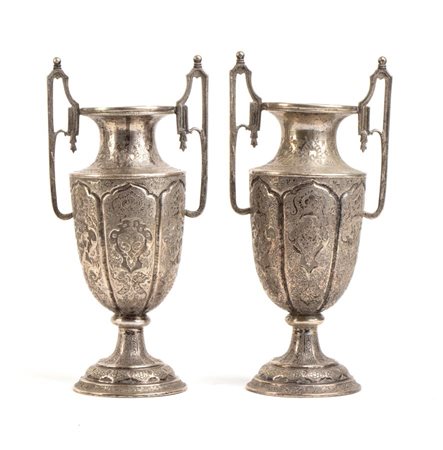 Coppia di vasi indiani in argento XIX secolo Altezza x larghezza x...