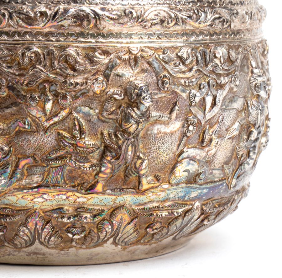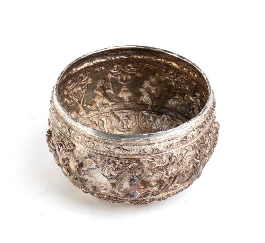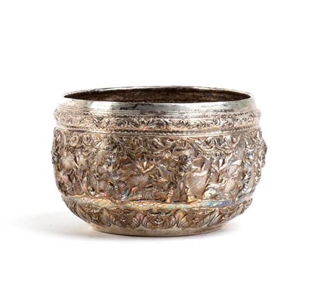 Ciotola Thabeik birmana in argento XIX secolo Altezza x diametro: 9,5x14 cm....