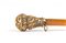 Lunghezza 67 cm. Peso 13 gr. in corno di rinoceronte color marrone miele (Rhinocerotidae spp.), con impugnatura laminata in oro a decori floreali.