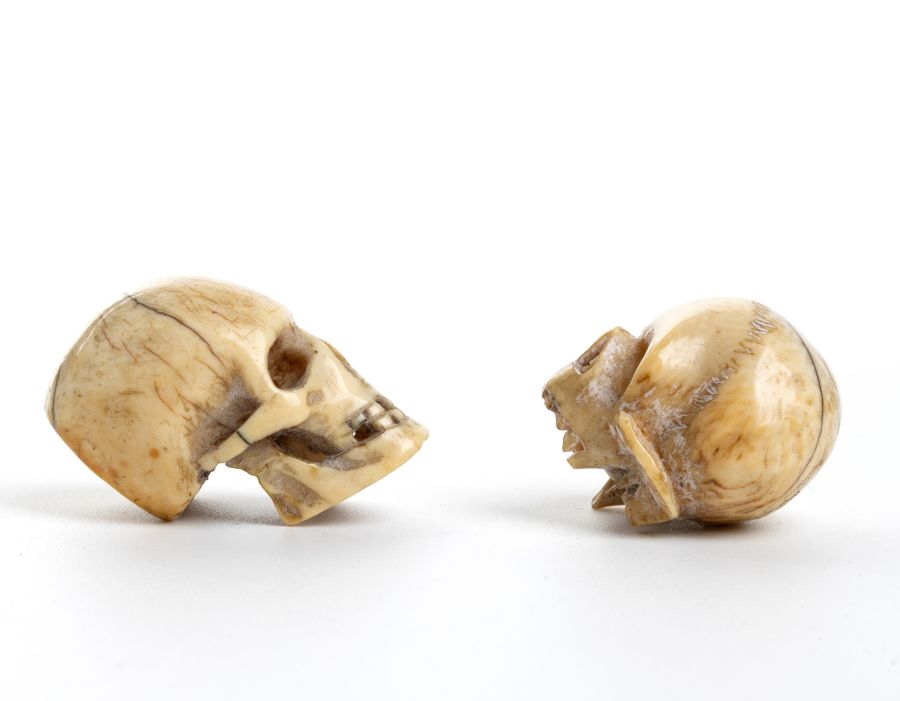 Due teschi tedeschi in avorio marino XIX secolo