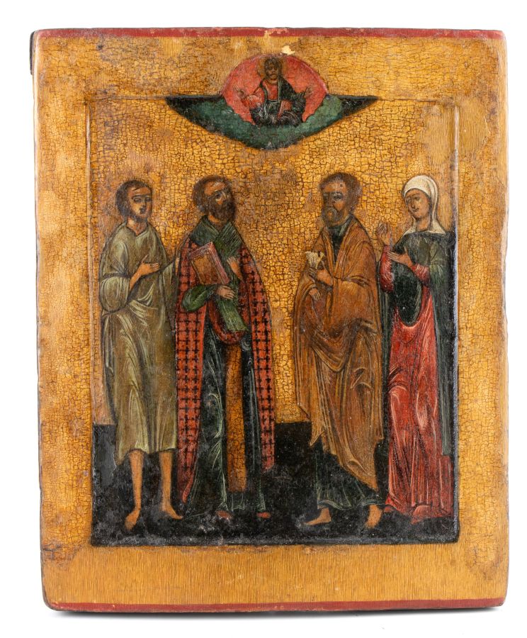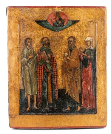 Icona russa con Santi XIX secolo Altezza x larghezza: 34,5 x 28 cm. tempera...