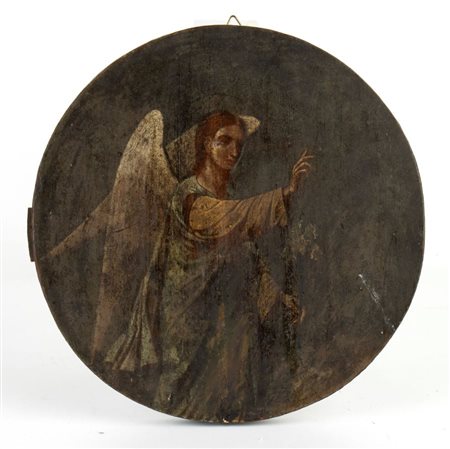 Icona raffigurante l'Arcangelo Gabriele Inizio XX secolo Diametro: 26,5 cm....