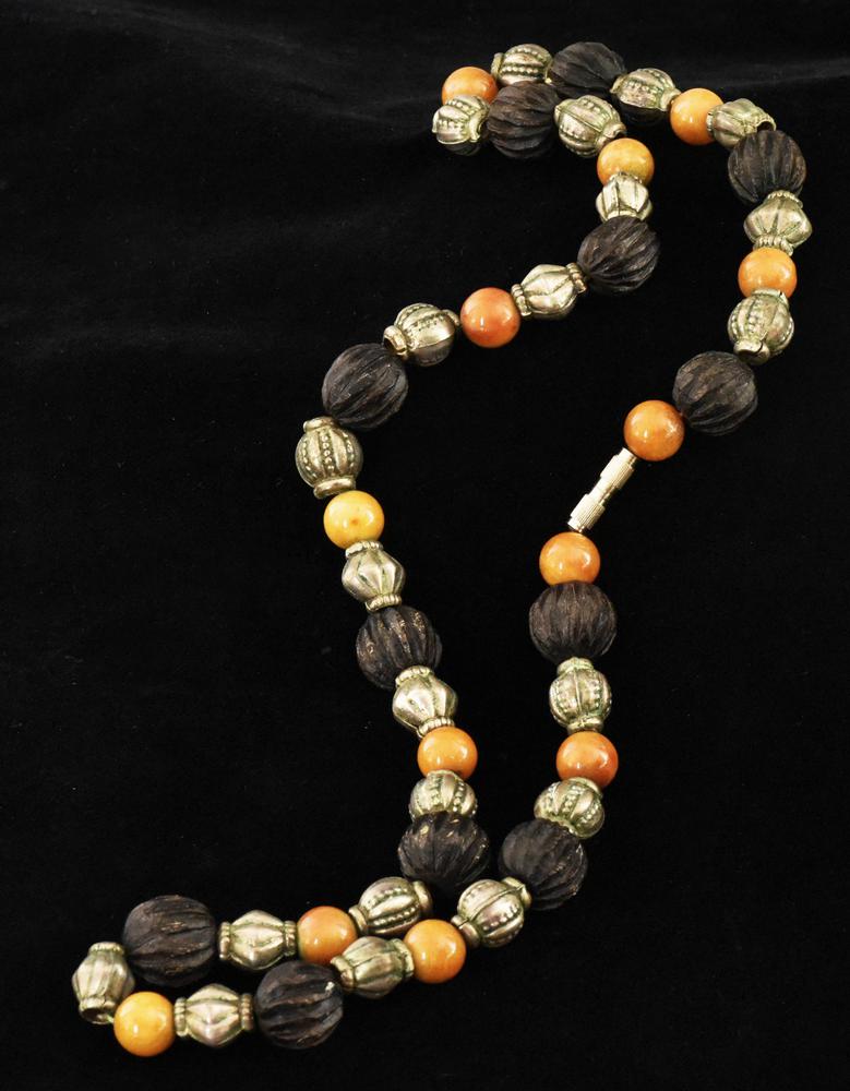 COLLANA ETNICA con pietre dure, argentone e legno lunghezza cm 57
